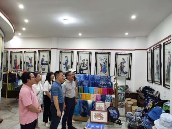 期间,朱小焱书记一行来到安顺蜡染博物馆,欣赏了一幅幅精美的馆藏蜡染作品,观看了蜡染作品的制作工艺和流程,并与中国民族工艺美术大师进行了面对面的交流,感受了蜡染艺术的魅力,深深感受到中国非物质文化遗产的源远流长、博大精深。