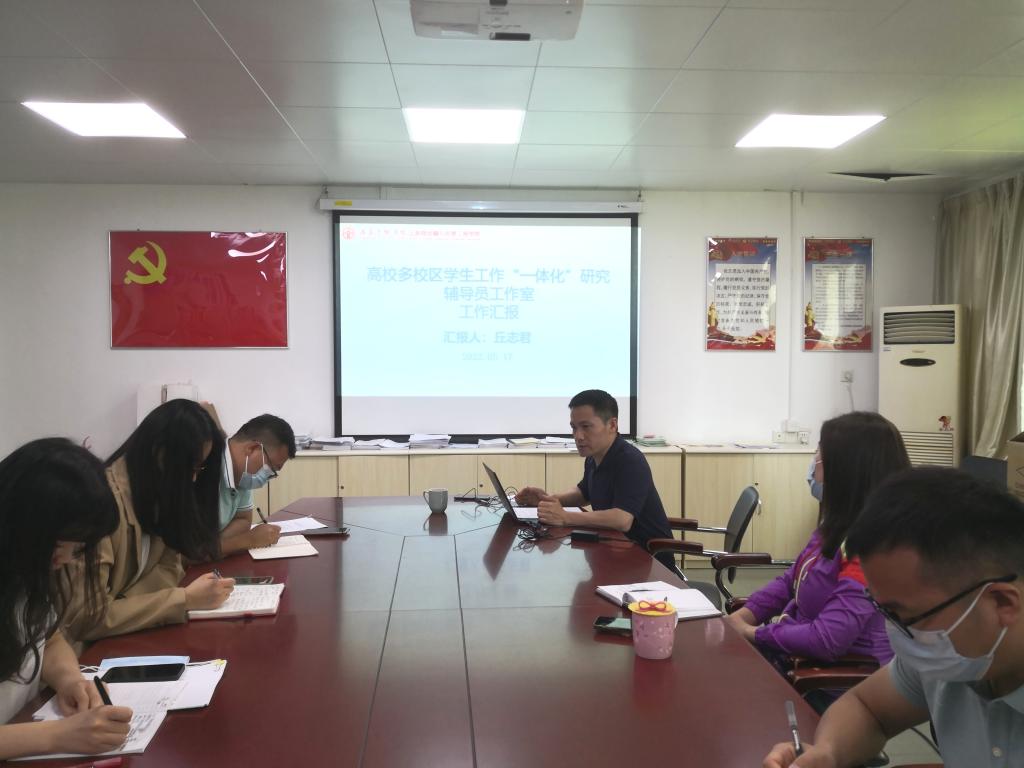 研讨期间,工作室负责人、公司党总支副书记丘志君向工作室成员汇报了研究现状、协助公司开展的延伸管理实践活动及下一步的研究方向。他指出,工作室因清远校区而设,为员工工作延伸管理而来,着力在“工作一体化、主体双核化”等“五化”研究上下功夫,助力公司开展“政策延伸、队伍延伸”等“五延伸”,努力推动校本部和校区员工工作的无缝对接,把“三全育人”工作落到实处。