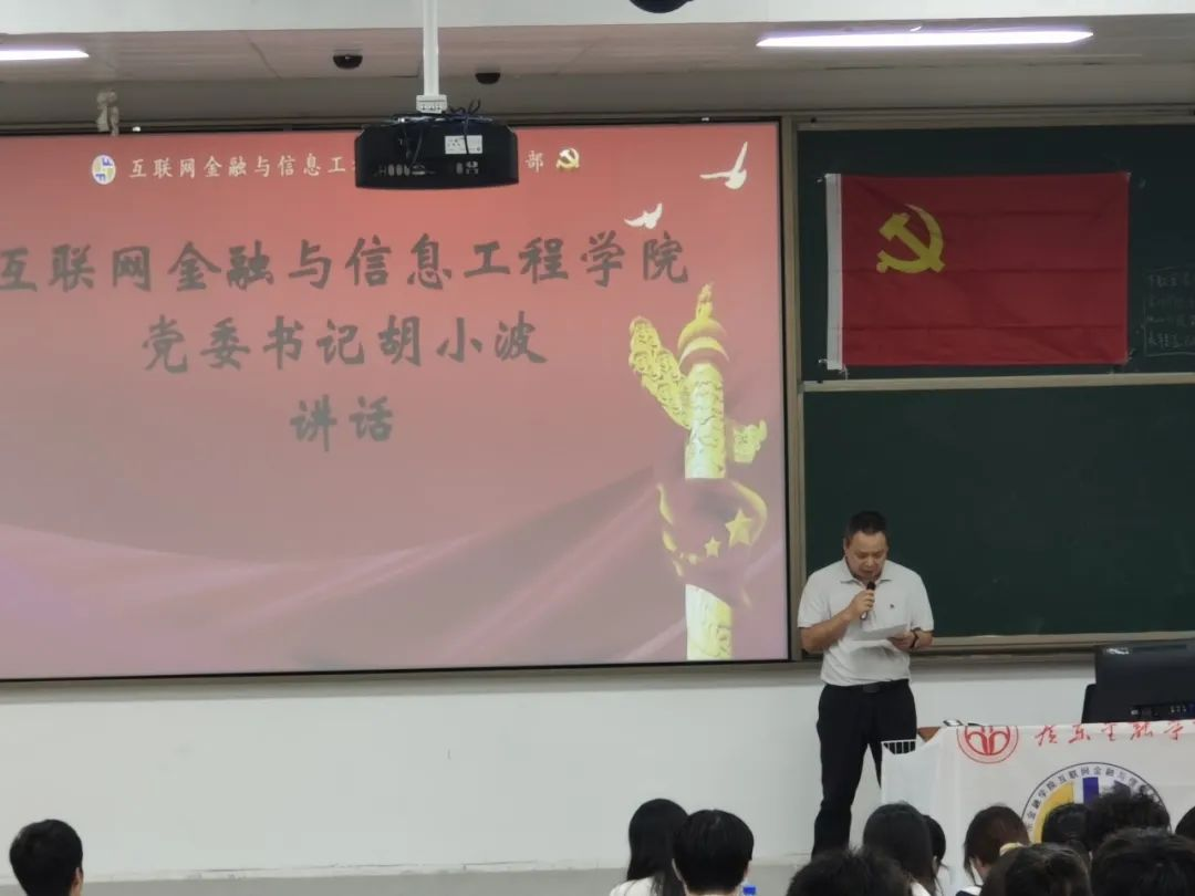 随后,胡小波书记上台讲话。书记首先对本次大会的成功举行和此次通表发展的20名同学以及顺利转正的24名同志表示祝贺。胡小波书记结合《中国共产党章程》为在场所有同志上了一堂生动的党课。他指出,要成为一名合格的党员,需牢牢记住党员应履行的义务,将全心全意为人民服务的宗旨放在心间,警醒大家切勿违反党纪党规,期望大家做到锐意进取、砥砺奋进、心系家国,做一个有理想、有信仰、敢拼搏的新时代青年。同时也希望在场所有党员要把入党作为新的契机,认真学习党章,坚定理想信念,不忘初心,拼搏奋斗,兢兢业业做好本职工作,发挥好党员的先锋模范作用,为实现中华民族伟大复兴的中国梦贡献自己的力量