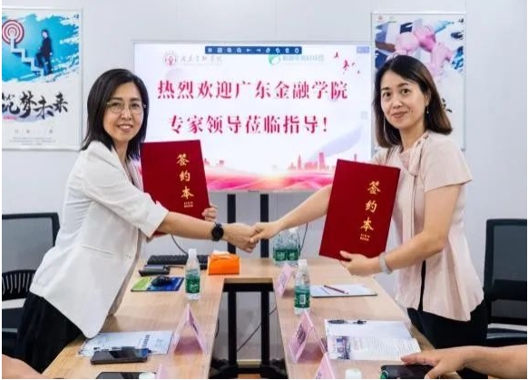 随后,一行人来到中山市格林电商科技园,就共建校企合作事宜进行交流,参观了园区核心区与入驻商户,科技园总经理陈燕介绍了园区“电商集聚地+生活配套服务”双轮驱动的产业特色,以及近年来孵化创新团队的成功经验,带领我们实地走访了园区内的电商企业,了解目前电商行业资讯及走势,新媒体与电商如何结合应用等。在交流过程中,365英国上市公司党委副书记李琳琳表示,一直以来公司积极推动教学与实践深度融合,希望能与格林电商科技园在人才培养、科研实践、实习就业等方面开展多层次、多领域合作。交流会上,双方签署了校企党建实习就业共建协议,将“学用结合、产教融合”推向新高度,未来双方将围绕“金融+电商+科技”的交叉融合,持续深化合作,共同培养更多符合时代需求的复合型人