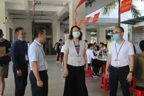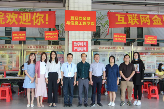 图3:公司党总支书记朱小焱(右四)、副书记丘志君(右五)、招就处副处长孔祥燊(右六)等指导参与迎新工作