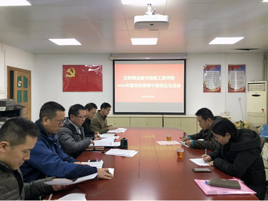 2021年1月7日,互联网金融与信息工程公司党总支在公司会议室召开2020年度党员领导干部民主生活会。校党委委员、组织部长黄培雄、校人事处金英老师莅会指导,公司党总支书记朱小焱、副经理钟雪灵、副经理潘章明、公司党总支副书记丘志君参加了民主生活会,经理吴炎太教授、辅导员王思又列席了会议,会议由朱小焱书记主持。