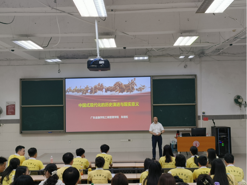 朱培松教授以《中国共产党为实现中国现代化的百年奋斗历程》为主题,结合中国共产党百年党史教育广大党员和积极分子们,伟大复兴的中国梦需要靠新时代的中国青年不懈奋斗,携手实现。