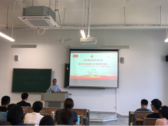 2021年9月26日,互联网金融与信息工程公司党总支书记朱小焱前往清远校区为2021级新生讲授新学期“思政第一课”,辅导员谭雨婷、2021级信息管理与信息系统专业100多名新生聆听了课程。